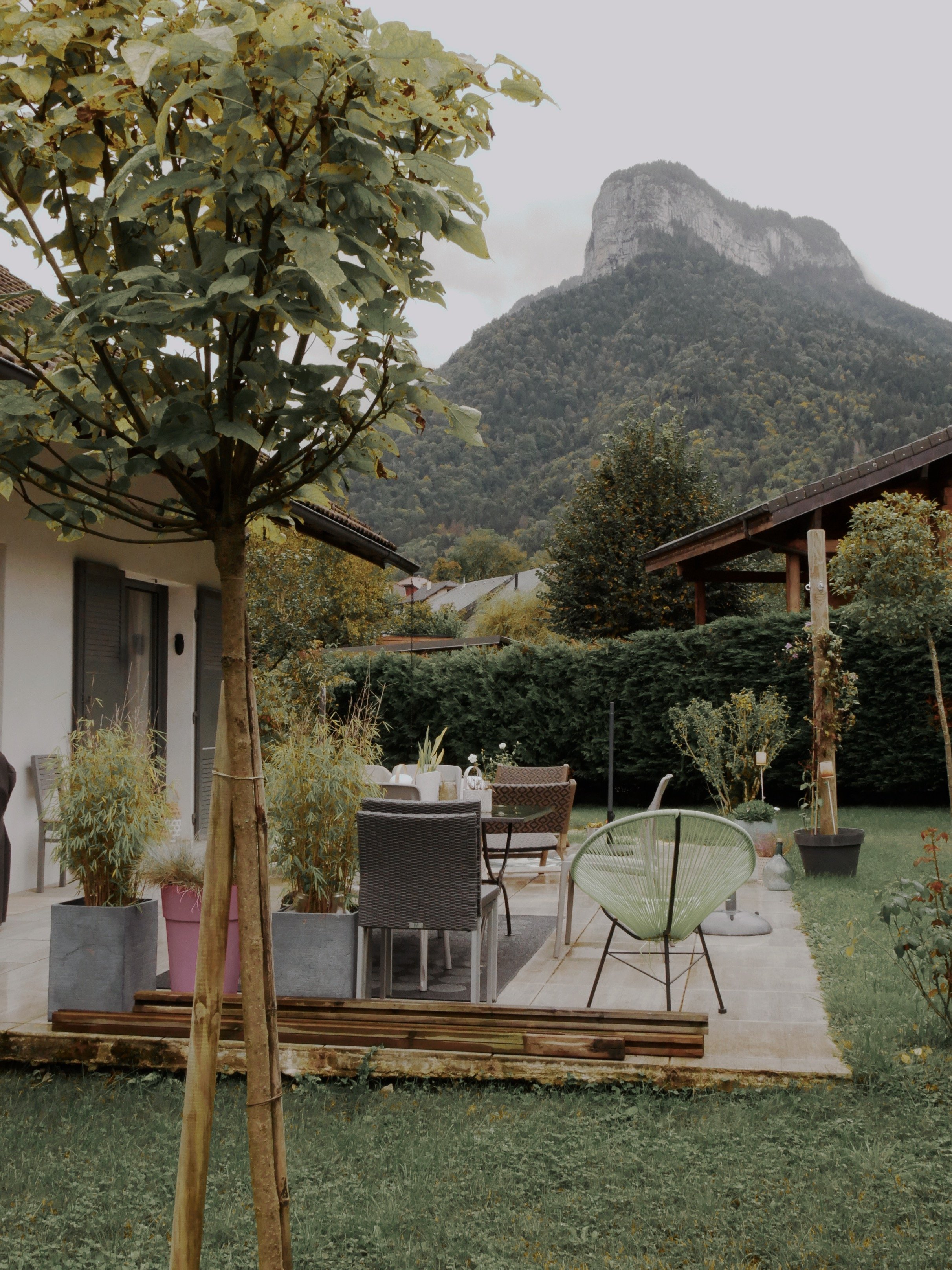Implantée sur un grand terrain, elle profite d’une vue à 360° sur les montagnes environnantes, pour une vie ouverte sur la nature.